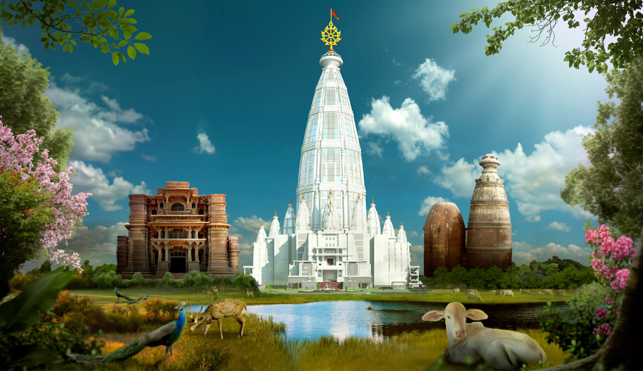 The site of Vrindavan Chandrodaya Mandir is located on the Bhaktivedanta Swami Marg, which is the main access to Vrindavan town. This skyscraper infrastructure will consist of a magnificent temple of Lord Sri Krishna at its centre and harmoniously combine elements of both Indian temple architecture and modern architecture. This project will represent the culture and heritage of the Braj Bhoomi.