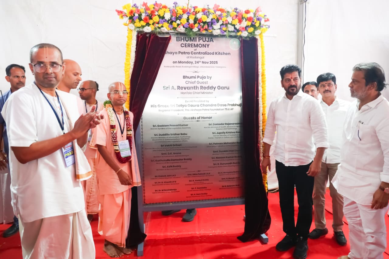 We are grateful to the Hon’ble Chief Minister of Telangana Sri Revanth Reddy Garu, for laying the foundation stone for a state-of-the-art Akshaya Patra kitchen facility near Kodangal in Vikarabad district. This kitchen will serve freshly cooked, nutritious mid-day meals to over 28,000 students. We look forward to working closely with the Government of Telangana so that more children receive wholesome meals every day in school and pursue their education with enthusiasm and joy. We are also happy to participate in his vision to develop Kodangal into an international educational hub.